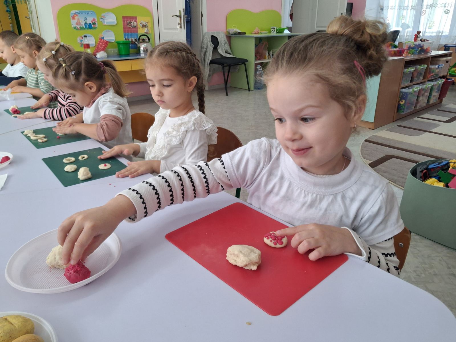 Щороку 20 жовтня кухарі з усьго світу відзначають професійне свято – Міжнародний день кухаря та кулінара. Наші малюки не залишились осторонь такої події. Діти перетворилися на майстер – шефів кулінарів та кухарів , виготовляли з солоного тіста печиво, самостійно пригадували цікаві страви, які вони коштували. Під час гри, готували страви, коментували з яких компонентів вони складаються. І звичайно привітали нашу кухарочку Олену Миколаївну!